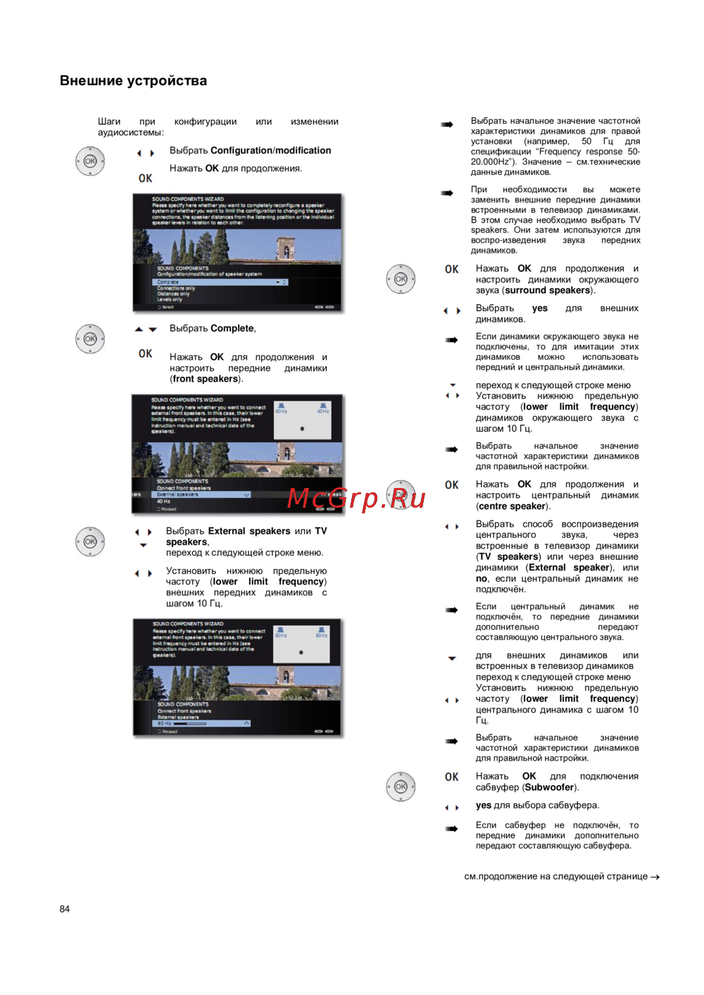 - Оборудование телевизора p.104