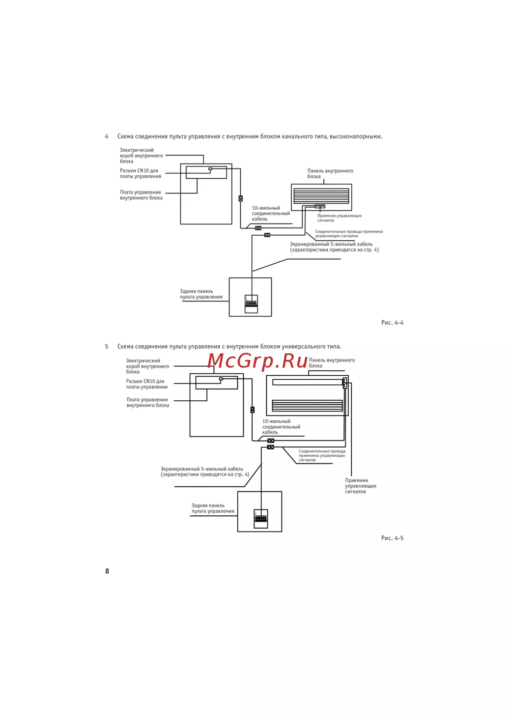 - Схема соединения пульта управления с внутренним блоком канального типа высоконапорными p.8