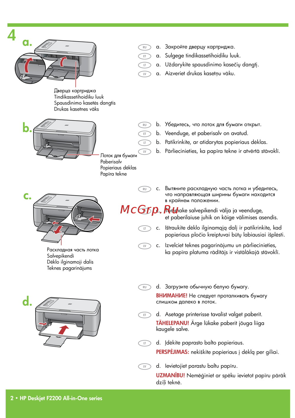 HP Deskjet F2200 All-in-One — установка бумаги в многофункциональные устройства: пошаговая инструкция [2/8]