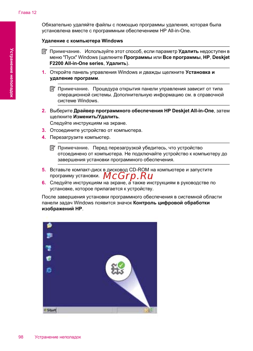 HP Deskjet F2200 All-in-One — инструкция по удалению программного обеспечения с компьютера [101/243]