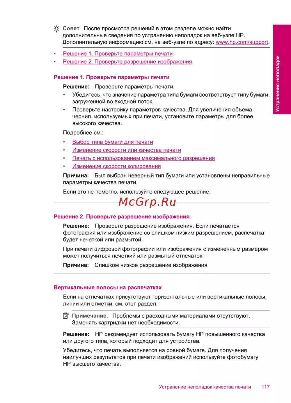 Решение: HP рекомендует использовать бумагу HP повышенного качества