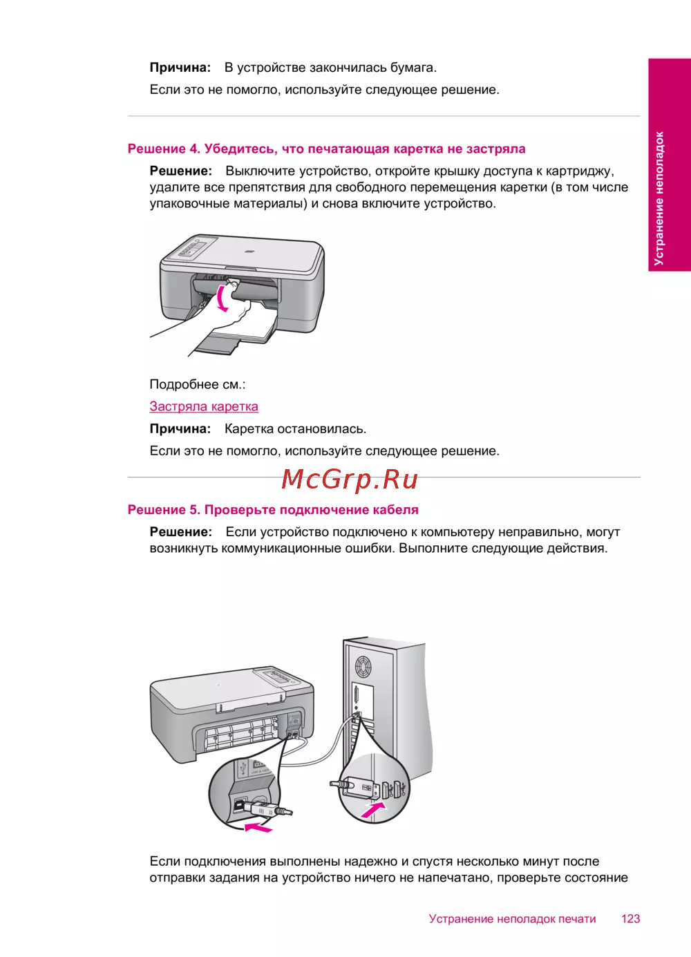 Устранение неполадок печати 123