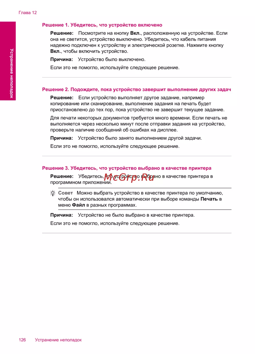 126 Устранение неполадок
