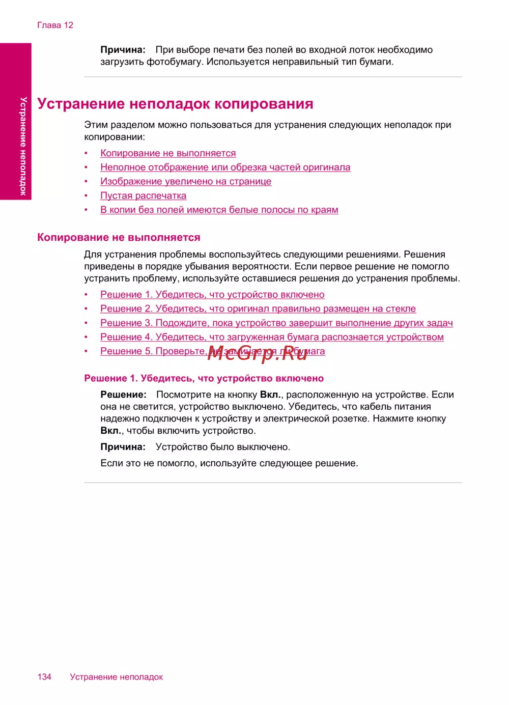 Этим разделом можно пользоваться для устранения следующих неполадок при