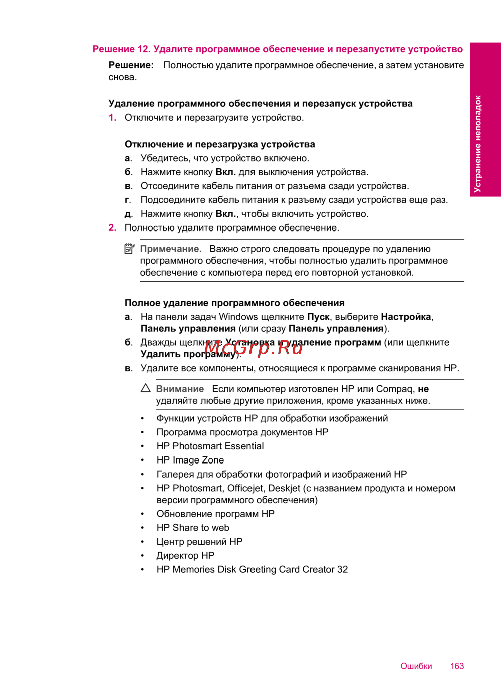в. Удалите все компоненты, относящиеся к программе сканирования HP.