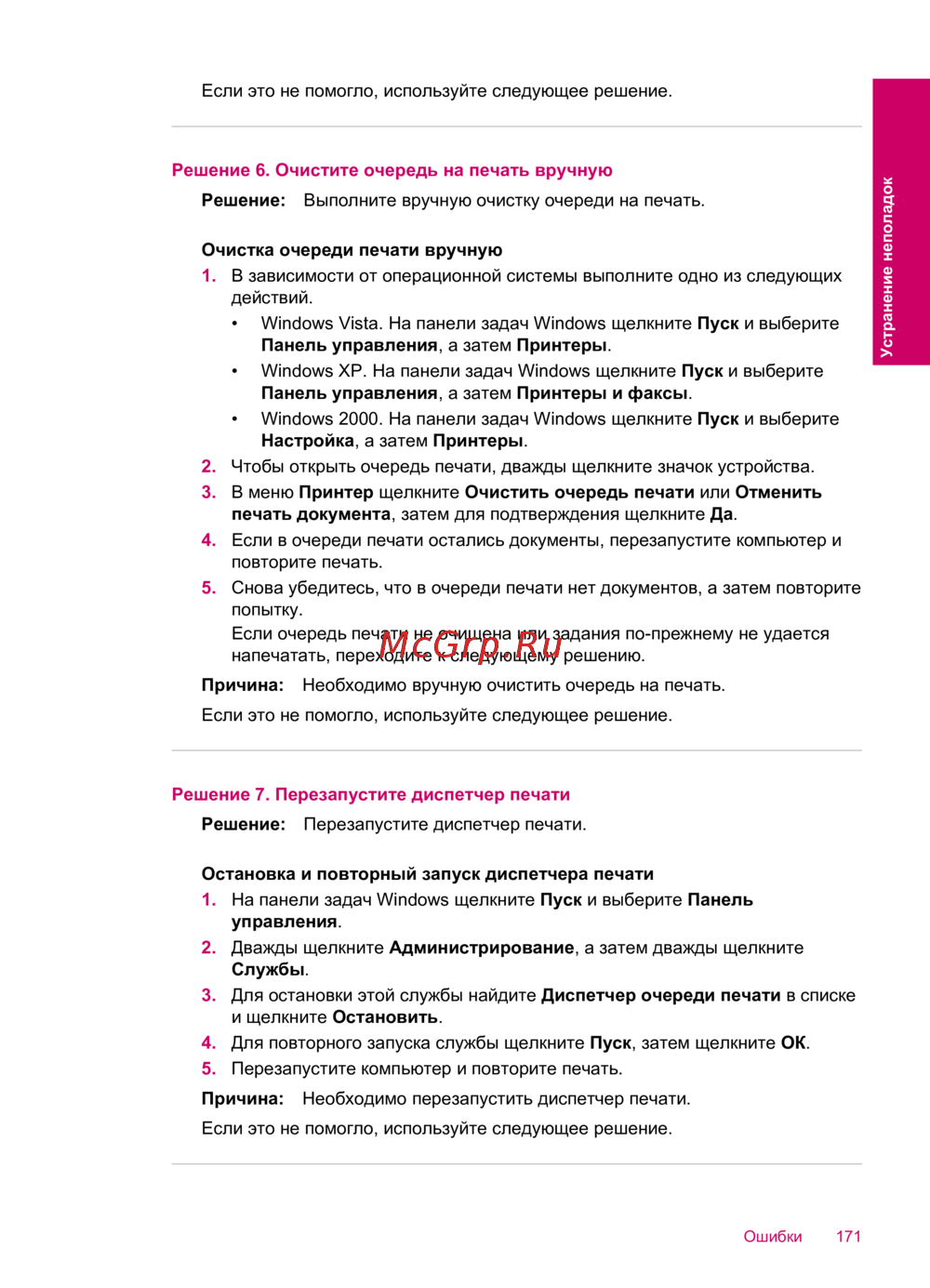 HP Deskjet F2200 All-in-One — как очистить очередь печати и перезапустить диспетчер печати [174/243]