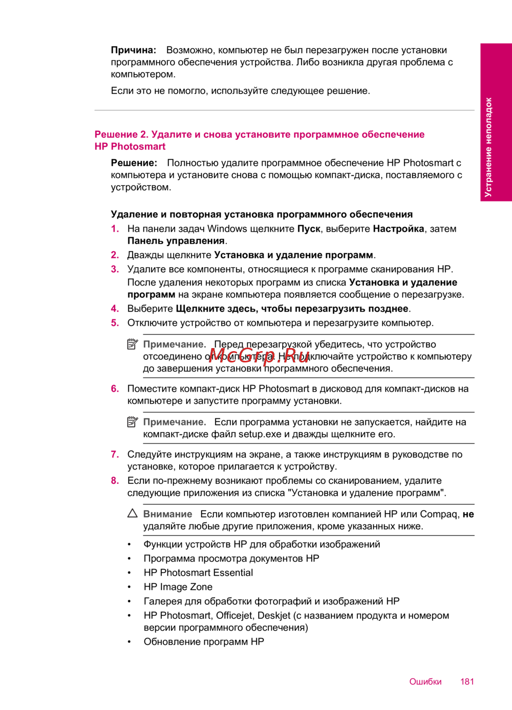 Решение: Полностью удалите программное обеспечение HP Photosmart с