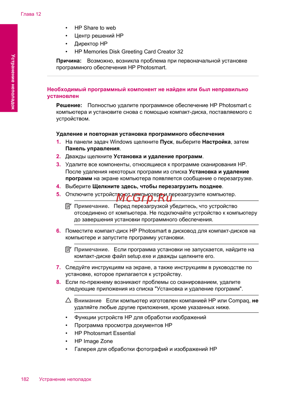 Решение: Полностью удалите программное обеспечение HP Photosmart с