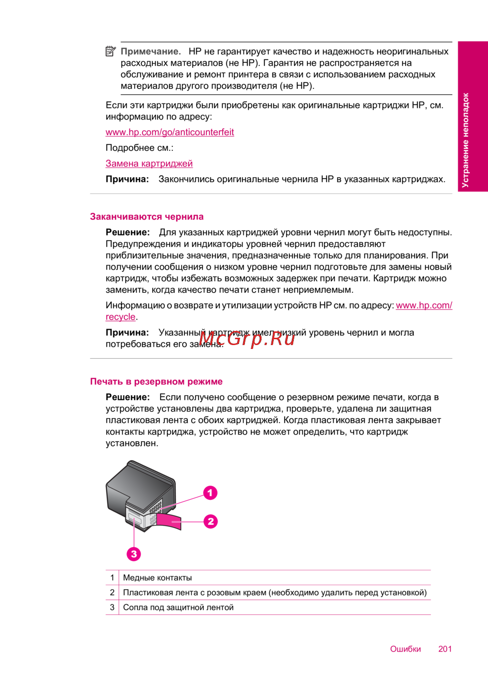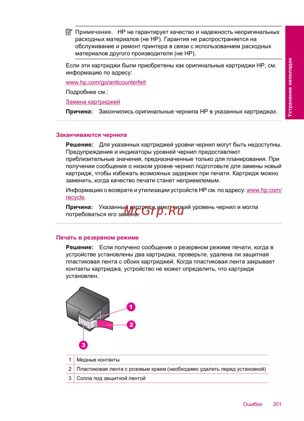 Примечание. HP не гарантирует качество и надежность неоригинальных