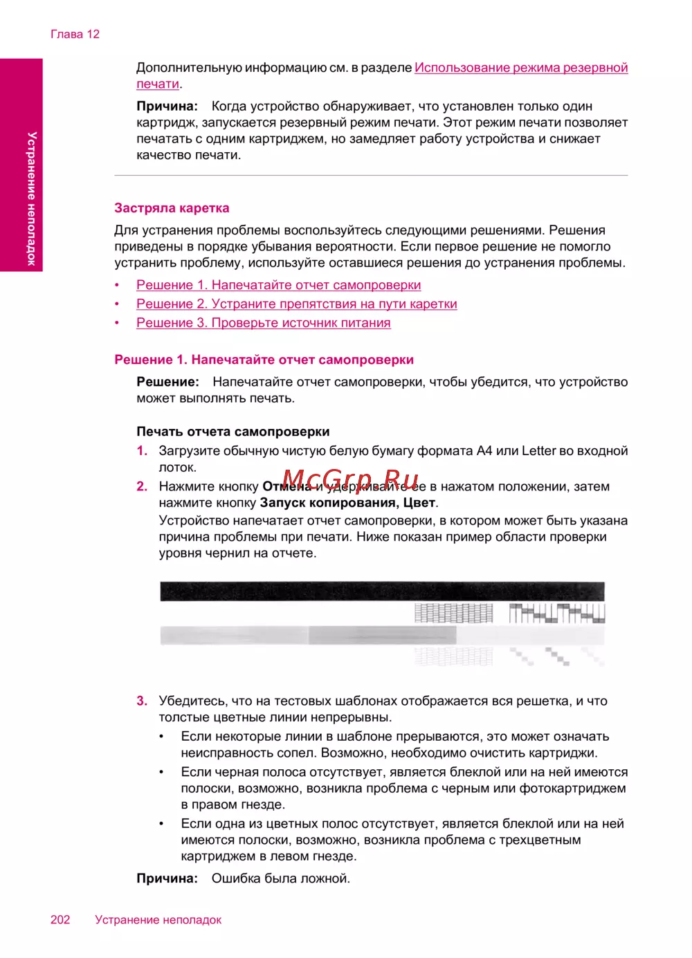 Решение: Напечатайте отчет самопроверки, чтобы убедится, что устройство
