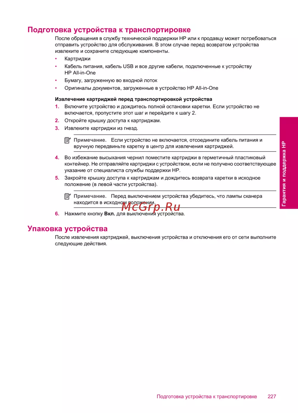 HP Deskjet F2200 All-in-One — подготовка устройства к транспортировке: шаги и рекомендации [230/243]