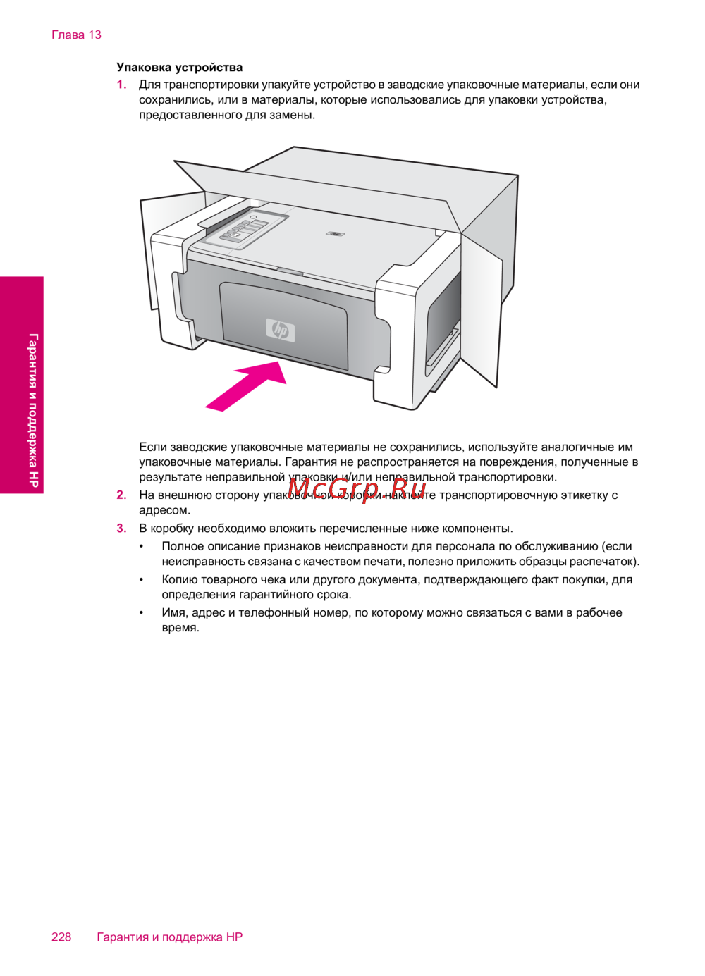 HP Deskjet F2200 All-in-One — правила упаковки устройства для транспортировки и гарантии [231/243]