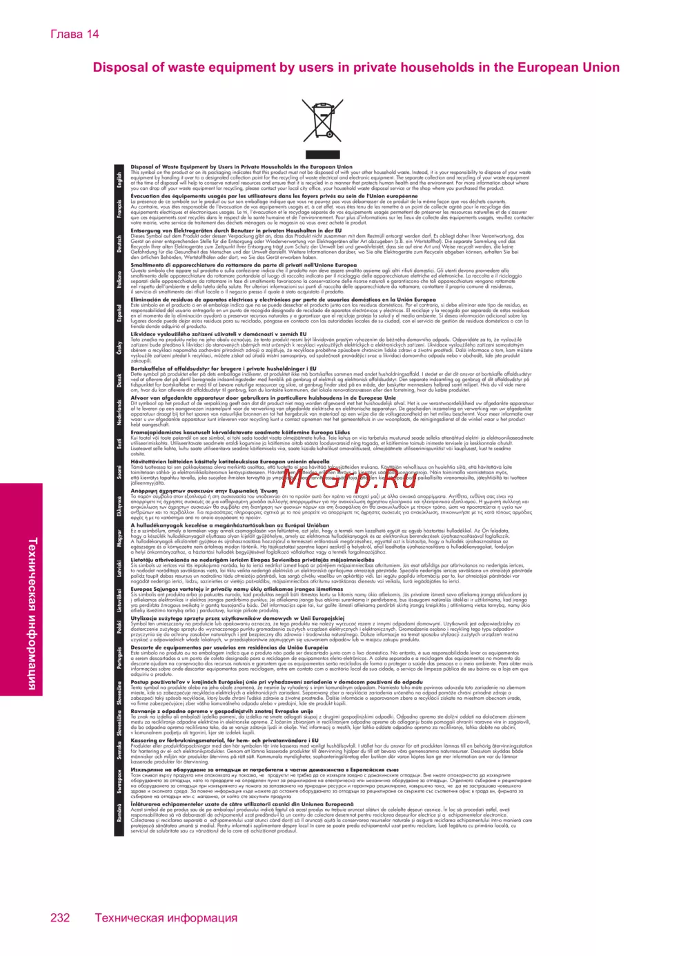 HP Deskjet F2200 All-in-One — правильная утилизация электрооборудования в домохозяйствах ЕС [235/243]