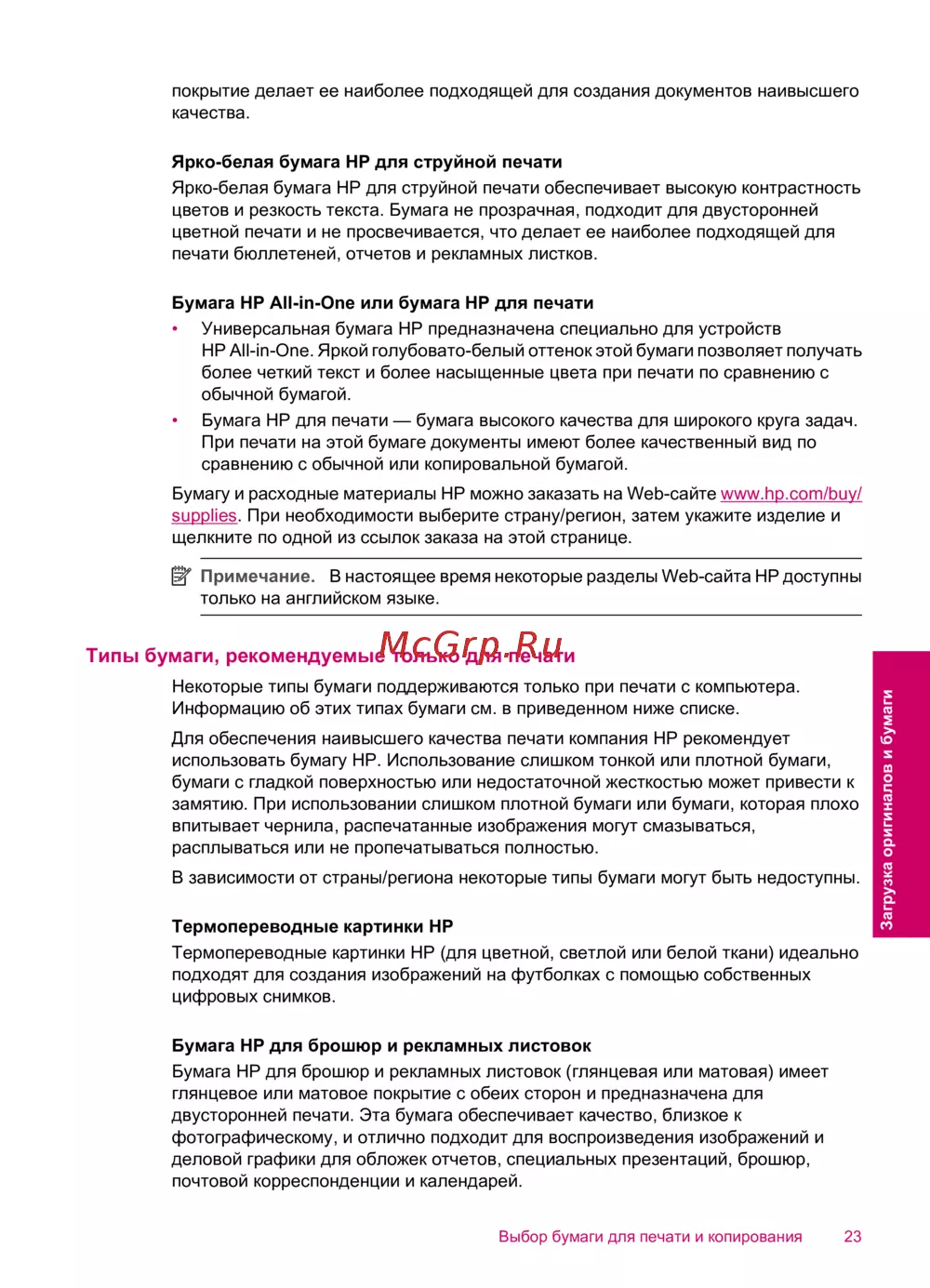 - Рекомендуемые типы бумаги для печати и копирования p.25