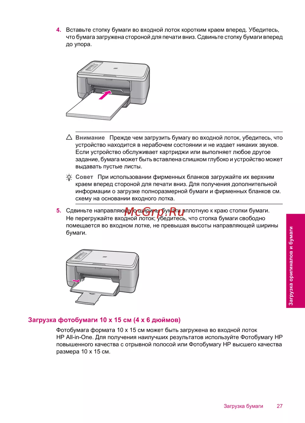 HP Deskjet F2200 All-in-One — как правильно загрузить бумагу в принтер: пошаговая инструкция [30/243]