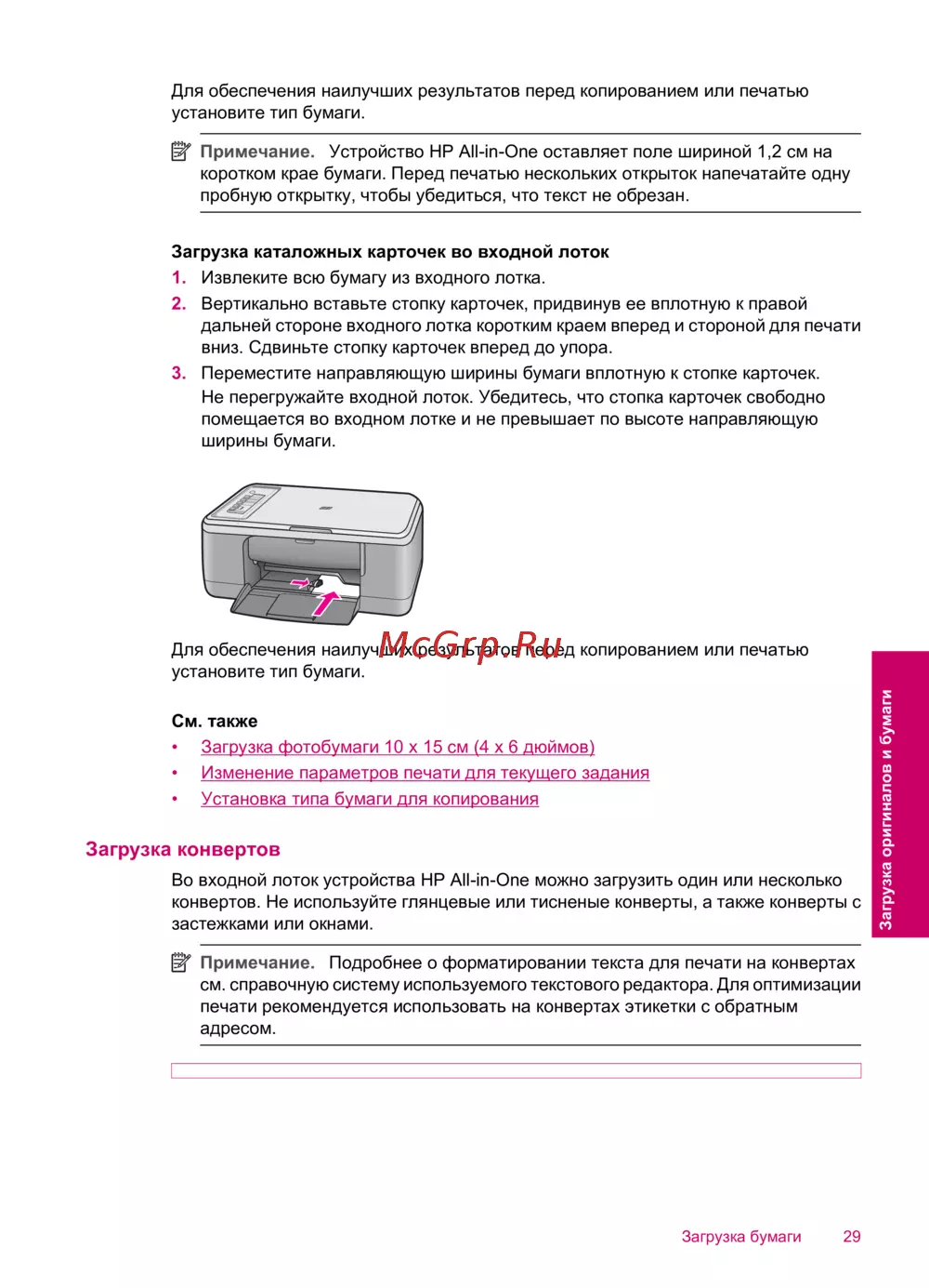 HP Deskjet F2200 All-in-One — как правильно загружать бумагу и конверты для печати [32/243]