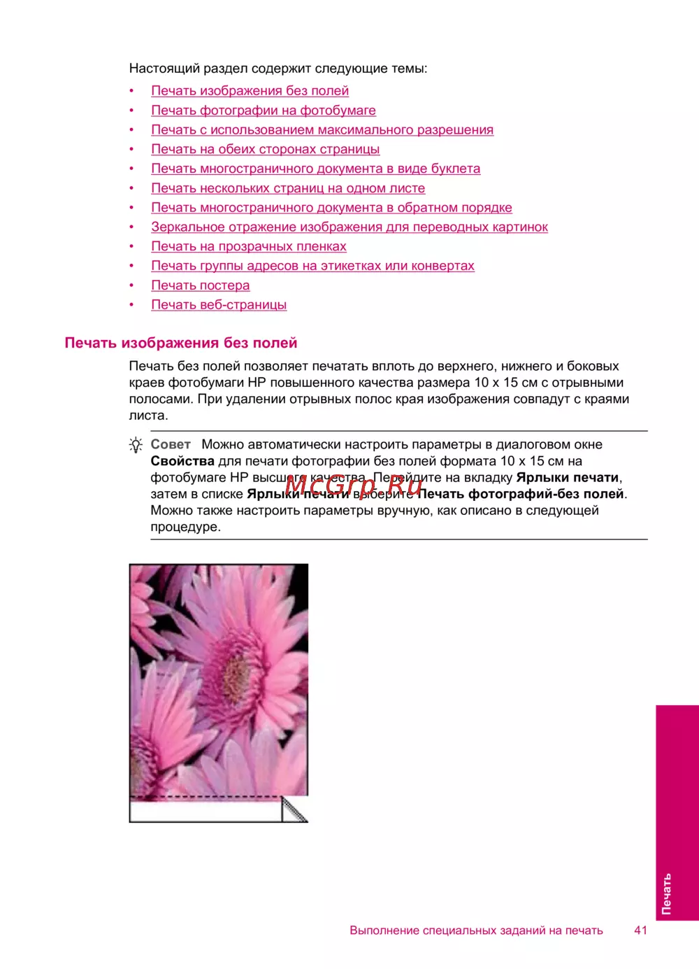 - Печать изображения без полей p.44