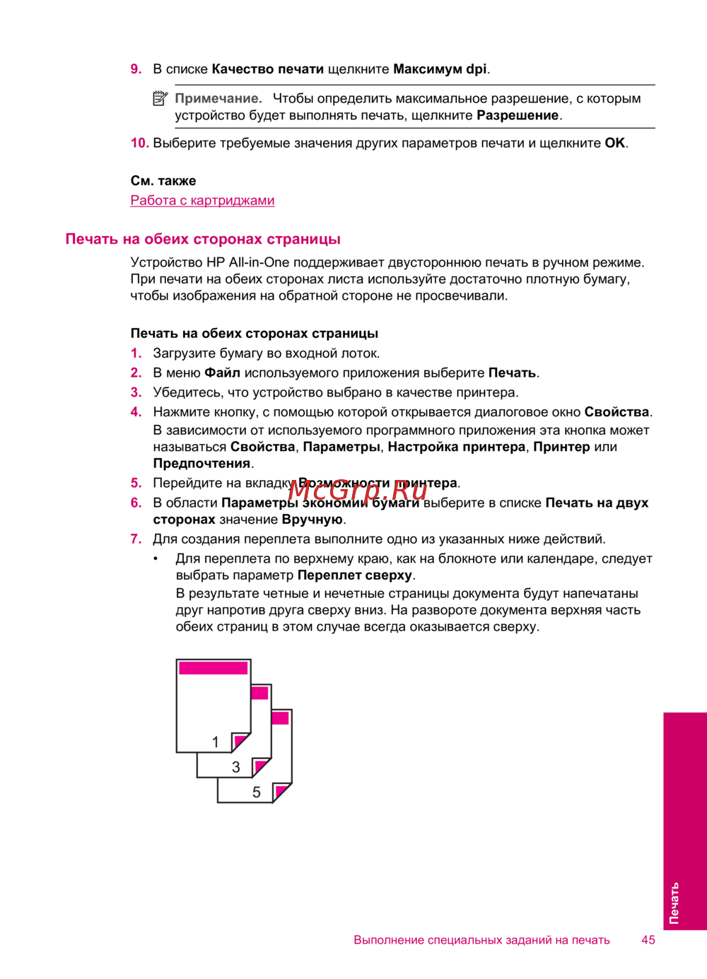 Устройство HP All-in-One поддерживает двустороннюю печать в ручном режиме.