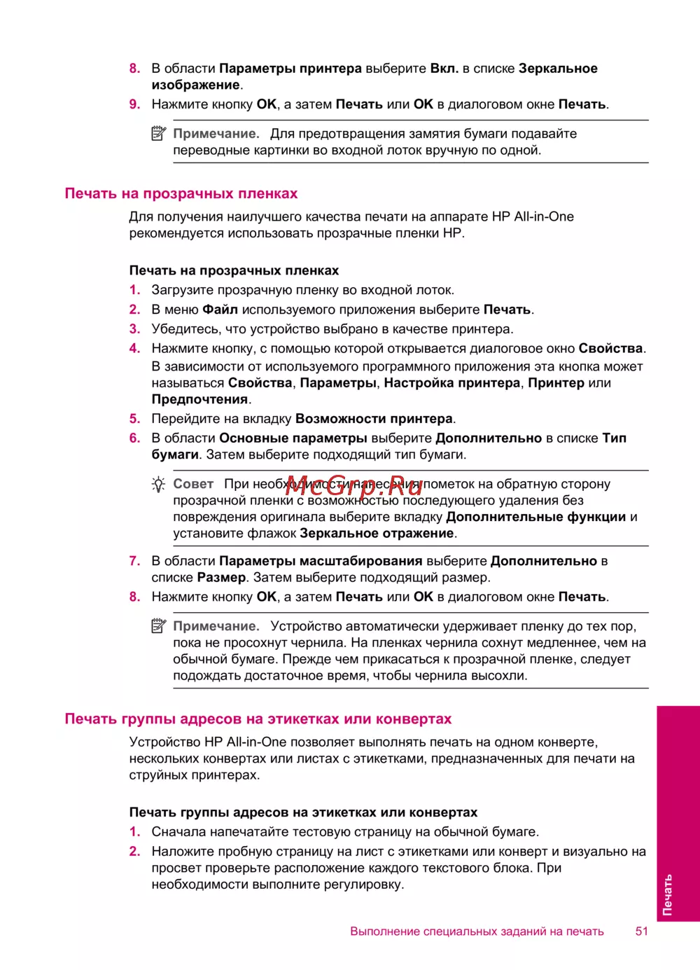 HP Deskjet F2200 All-in-One — как правильно печатать на прозрачных пленках и этикетках [54/243]