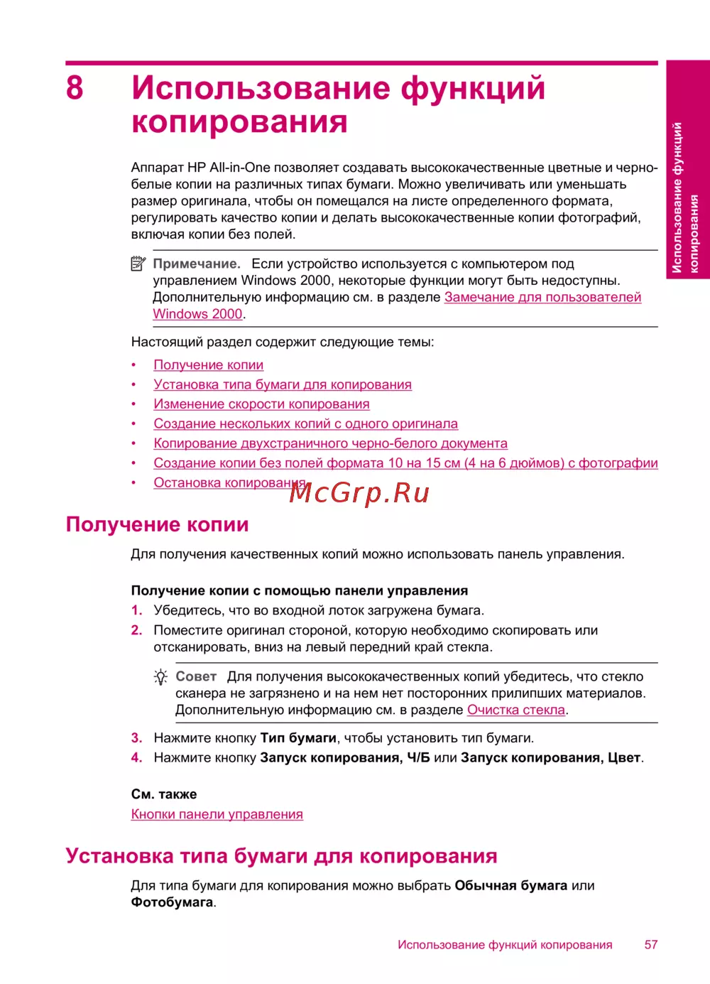 HP Deskjet F2200 All-in-One — как использовать функции копирования для высококачественных копий [60/243]
