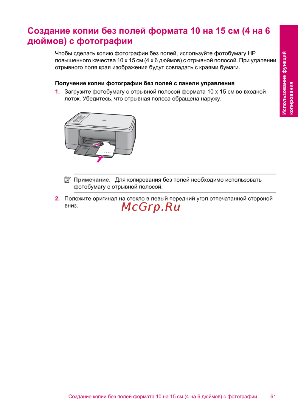 HP Deskjet F2200 All-in-One — как создать копию фотографии без полей формата 10x15 см [64/243]