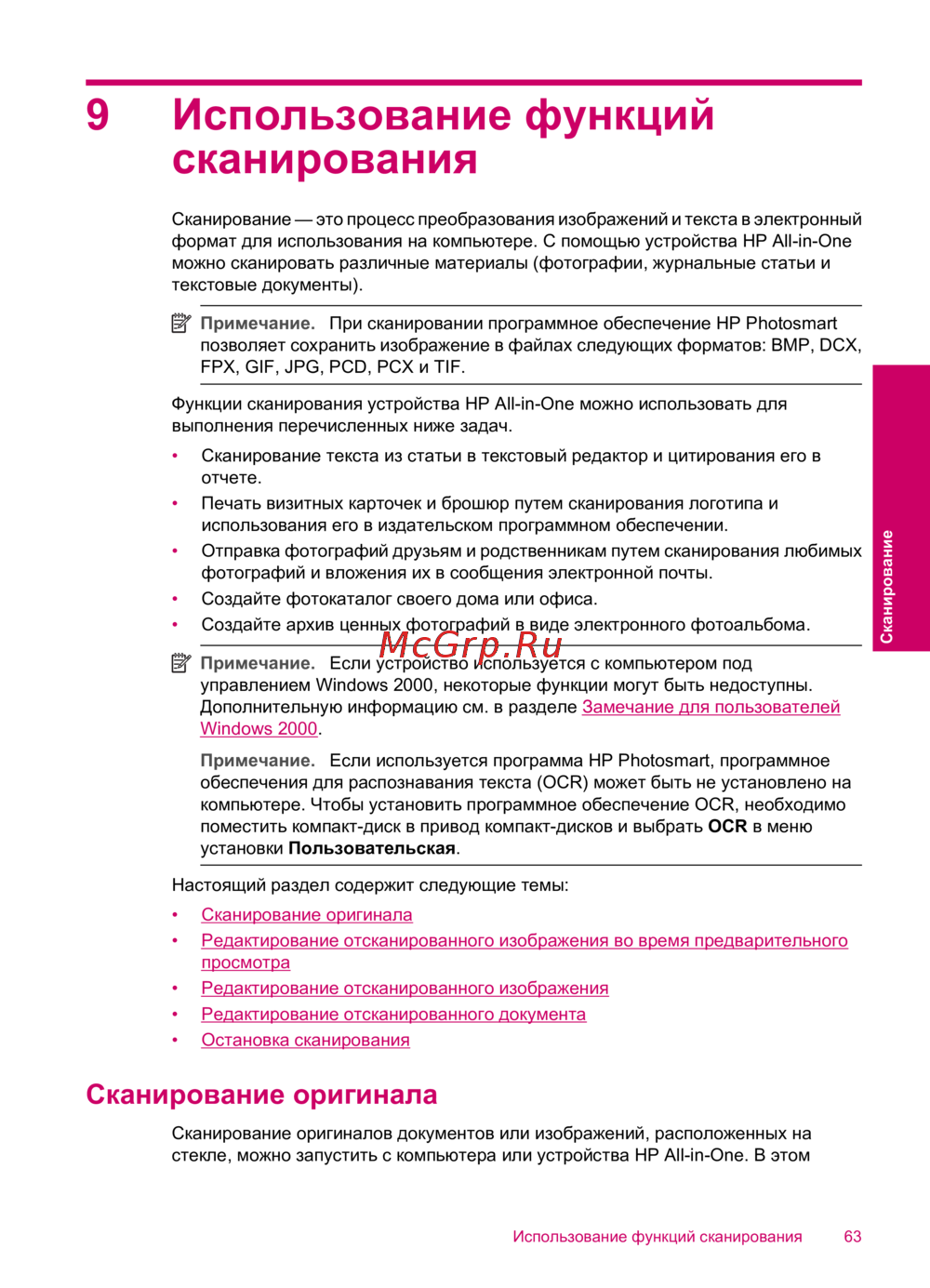 - Замечание для пользователей windows 2000 p.233