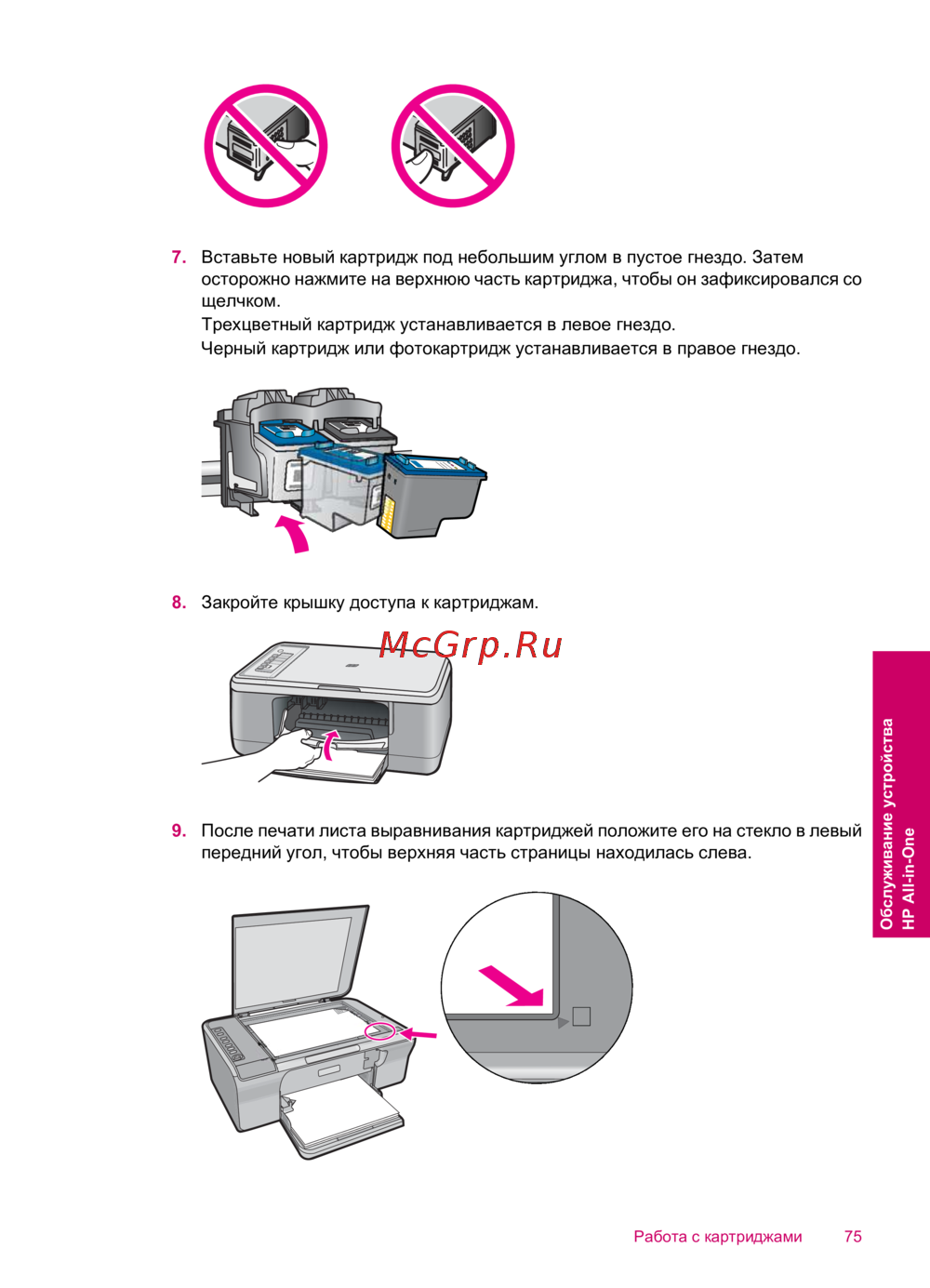 HP Deskjet F2200 All-in-One — как правильно установить картриджи в многофункциональное устройство [78/243]