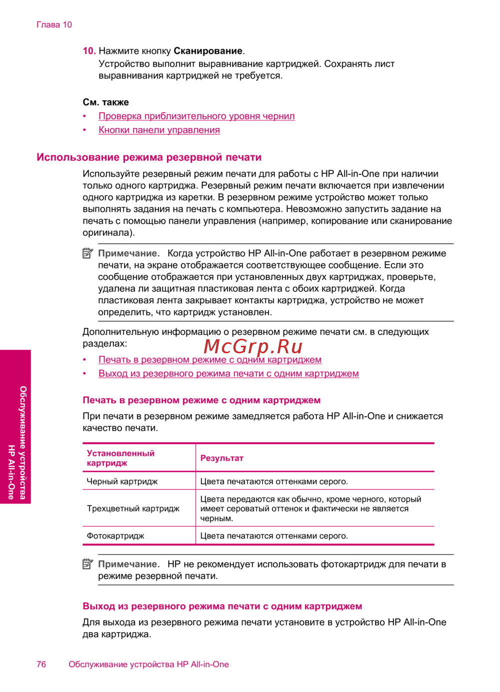 HP Deskjet F2200 All-in-One — режим резервной печати: советы по использованию и настройке [79/243]