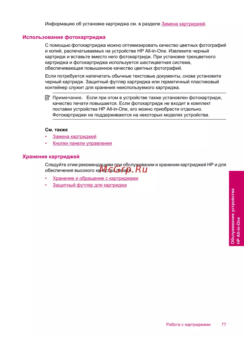 и копий, распечатываемых на устройстве HP All-in-One. Извлеките черный