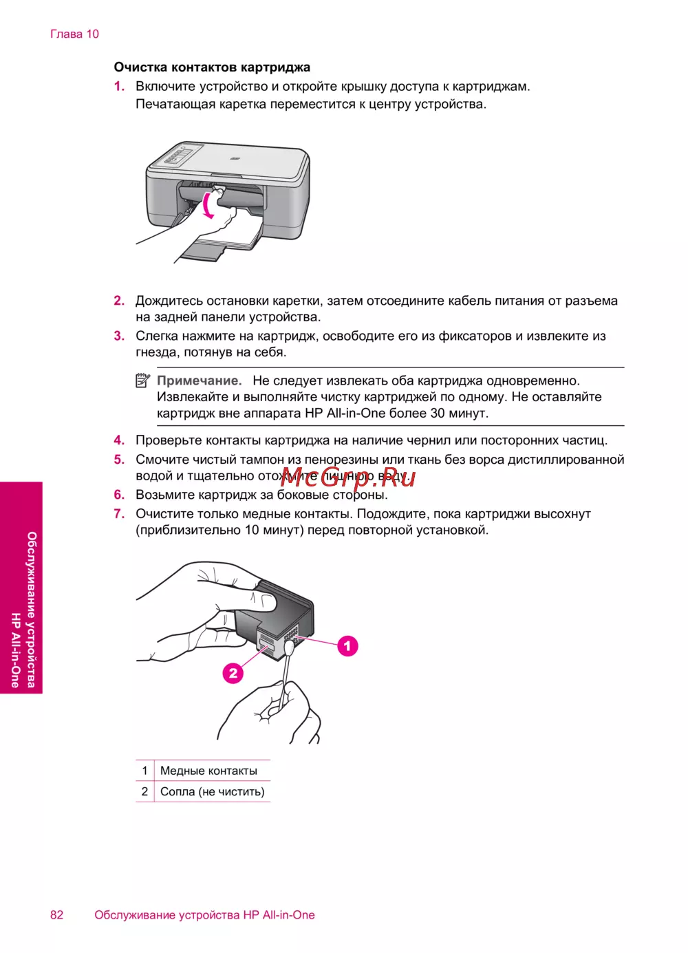 HP Deskjet F2200 All-in-One — как правильно очистить контакты картриджа принтера [85/243]
