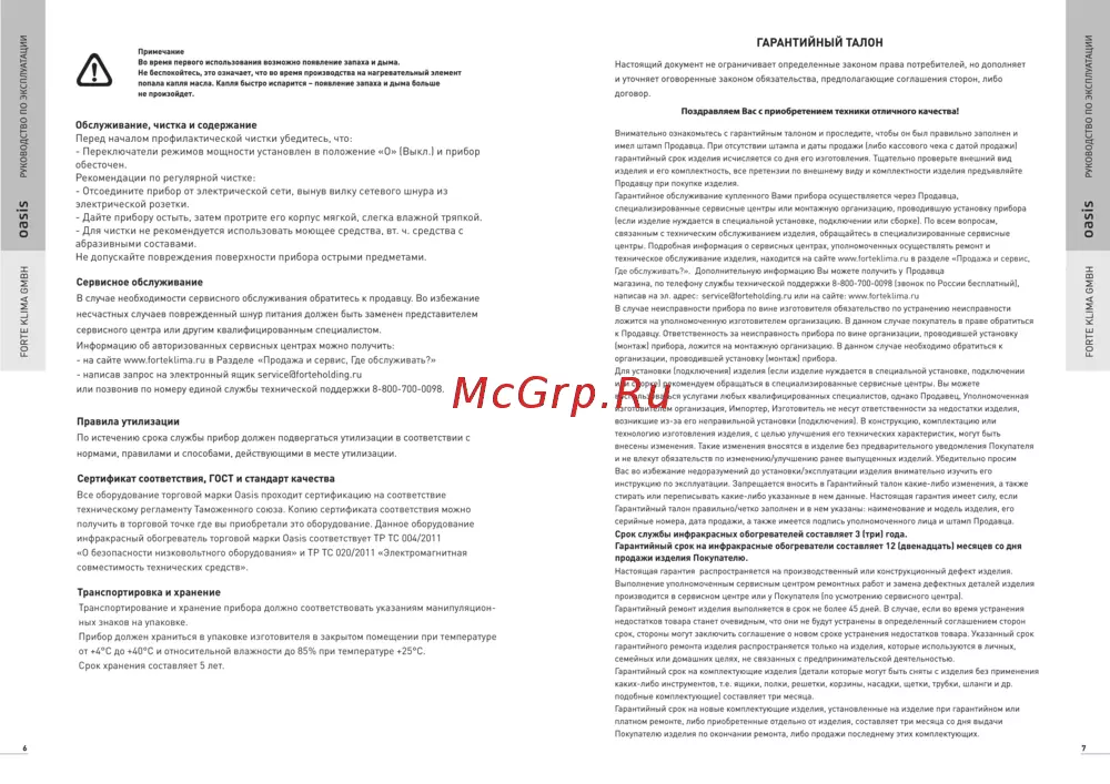 ![Oasis IS-12P (X) [5/8] Обслуживание чистка и содержание перед началом профилактической чистки убедитесь что переключатели режимов мощности установлен в положение о выкл и прибор обесточен рекомендации по регулярной чистке отсоедините прибор от электрической сети вынув вилку сетевого шнура из электрической розетки дайте прибору остыть затем протрите его корпус мягкой слегка влажной тряпкой для чистки не рекомендуется использовать моющее средства вт ч средства с абразивными составами не допускайте повреждения поверхности прибора острыми предметами](/views2/1659748/page5/bg5.png)
