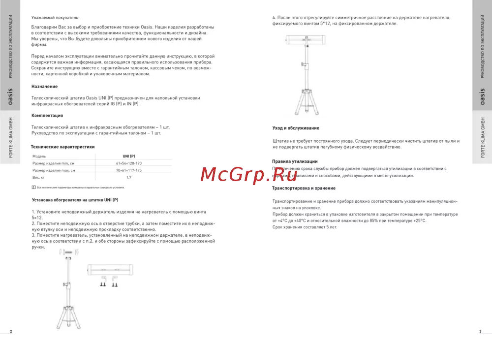 Узнайте о телескопическом штативе для инфракрасных обогревателей. Инструкция по установке, уходу и хранению. Обеспечьте надежную эксплуатацию вашего оборудования.