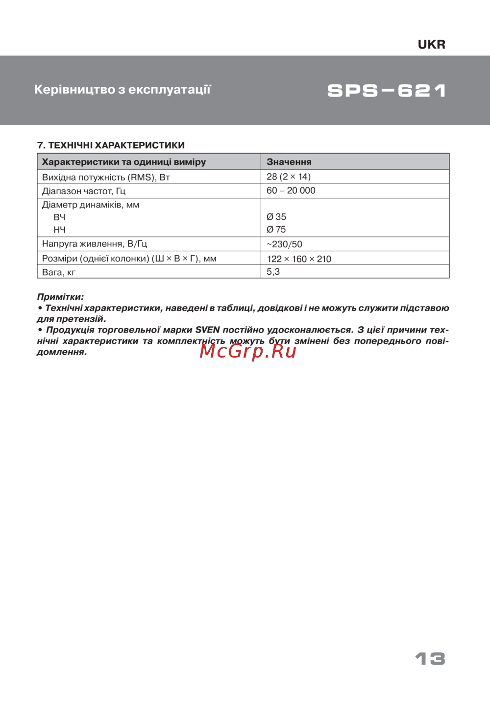 ![Sven SPS-621 [13/20] Керівництво з експлуатації](/views2/1662852/page13/bgd.png)