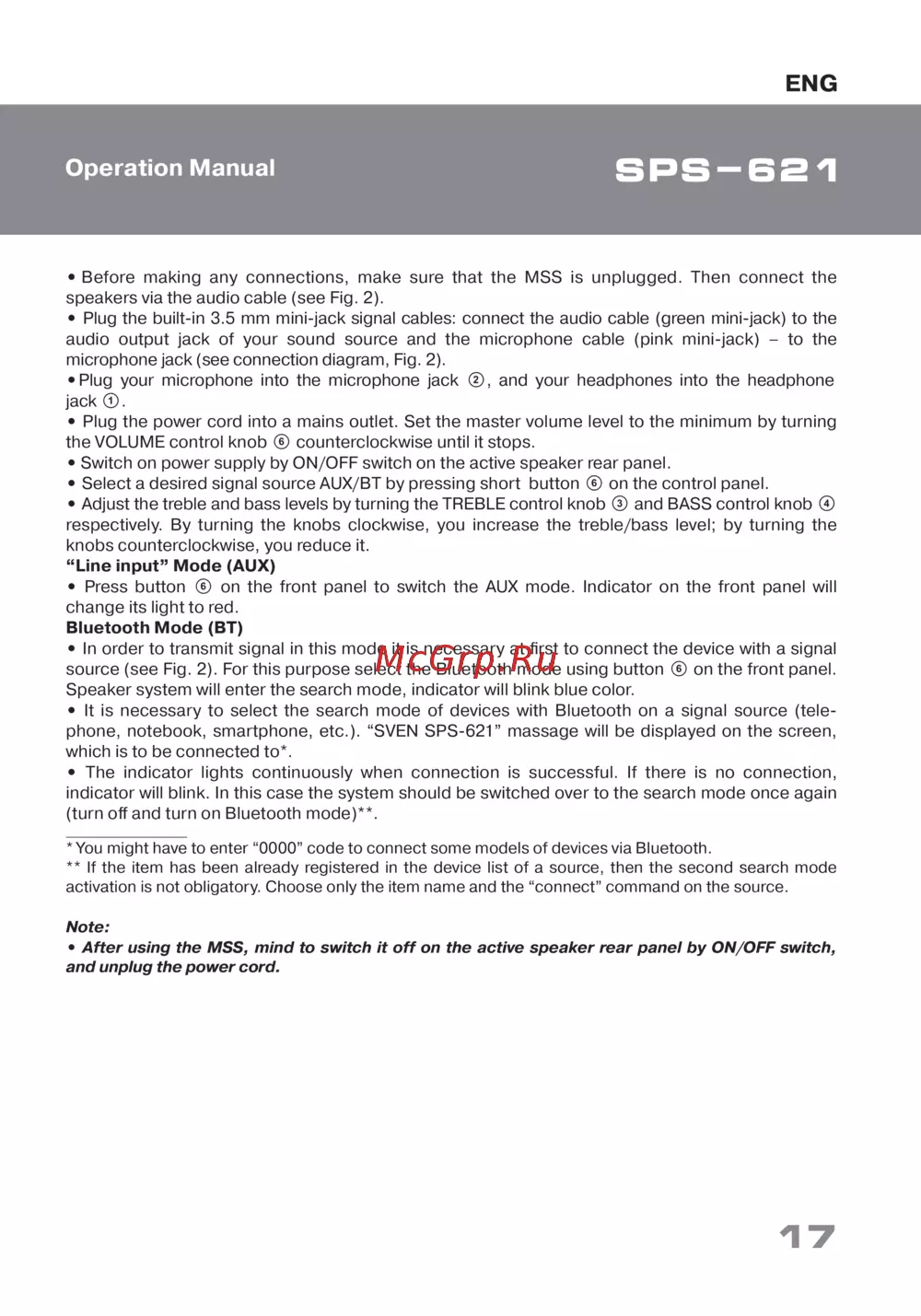 phone, notebook, smartphone, etc.). “SVEN SPS-621” massage will be displayed on the screen,