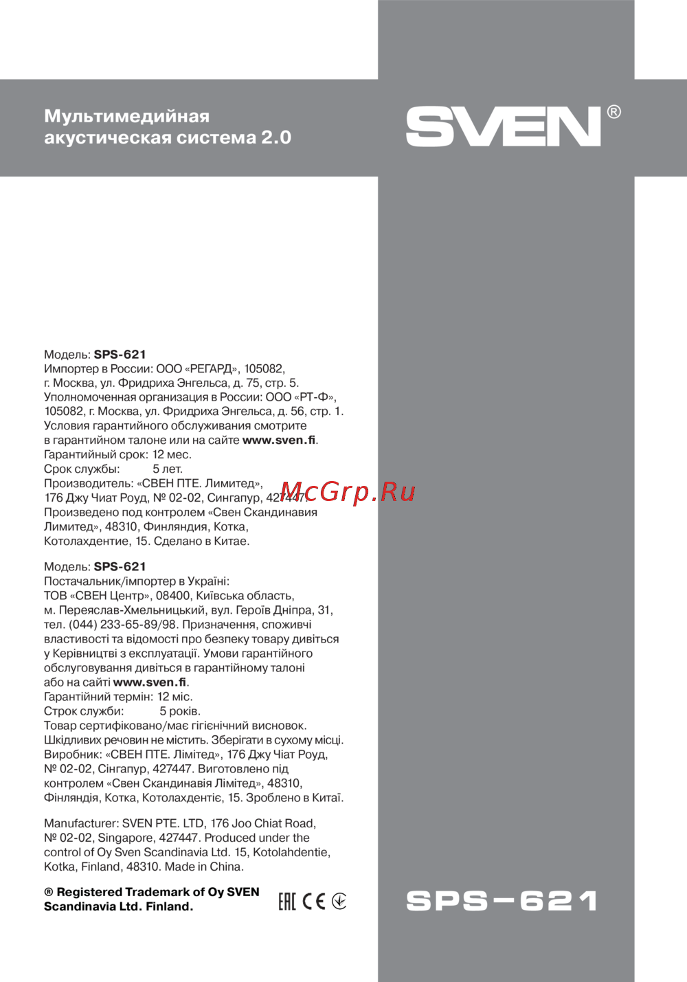 Производитель: «СВЕН ПТЕ. Лимитед»,