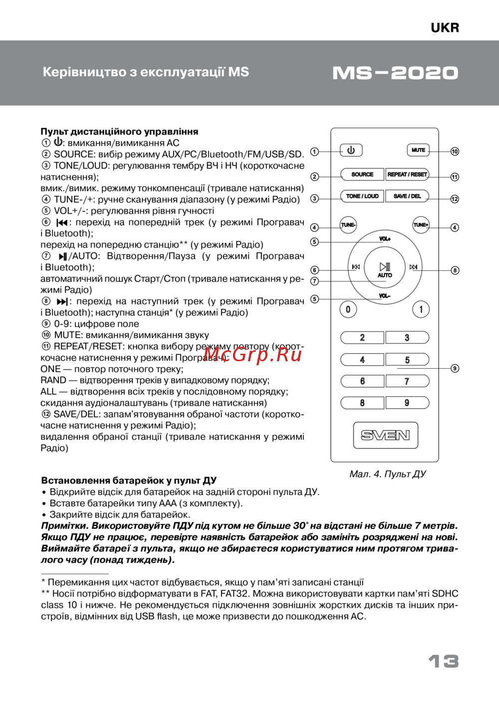 Sven MS-2020 [13/28] Мал 4 пульт ду