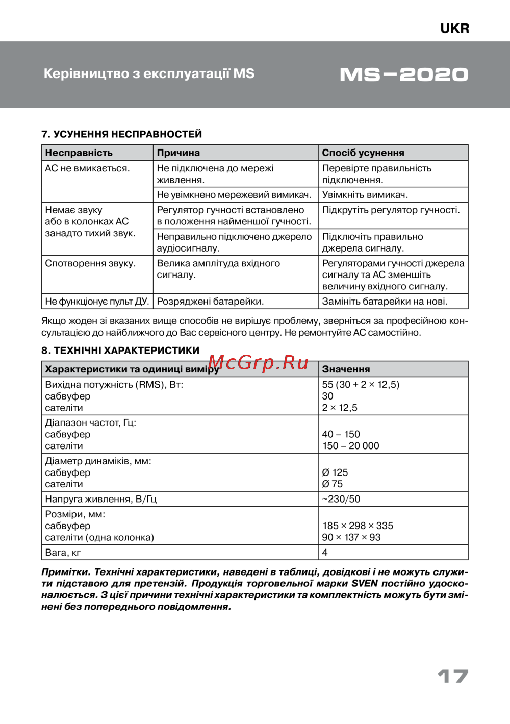 ![Sven MS-2020 [17/28] Технічні характеристики](/views2/1662857/page17/bg11.png)