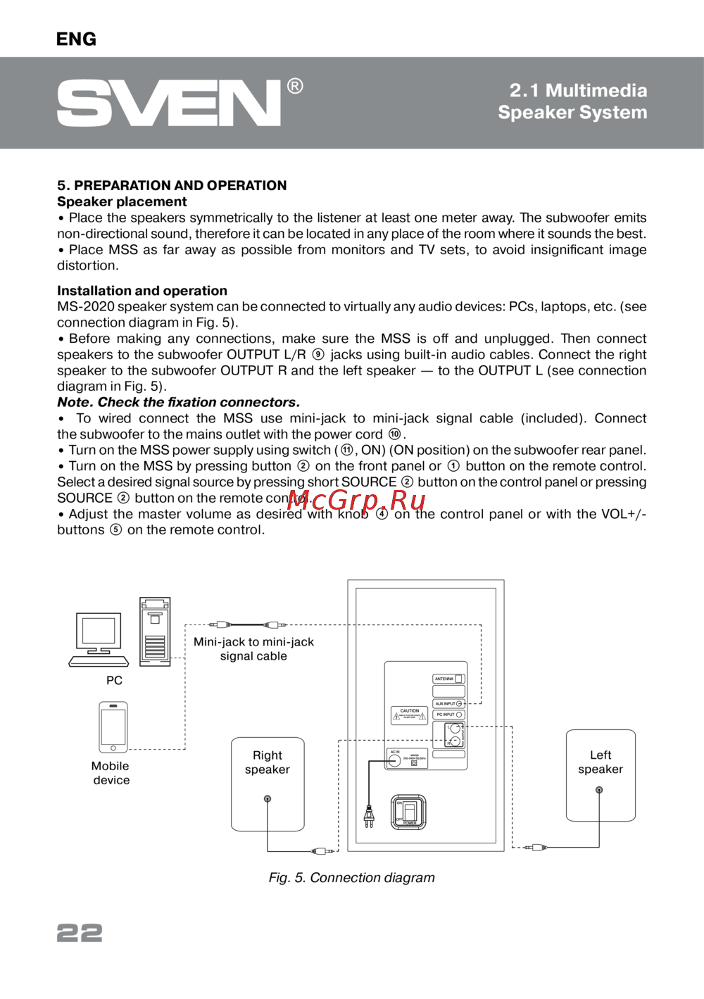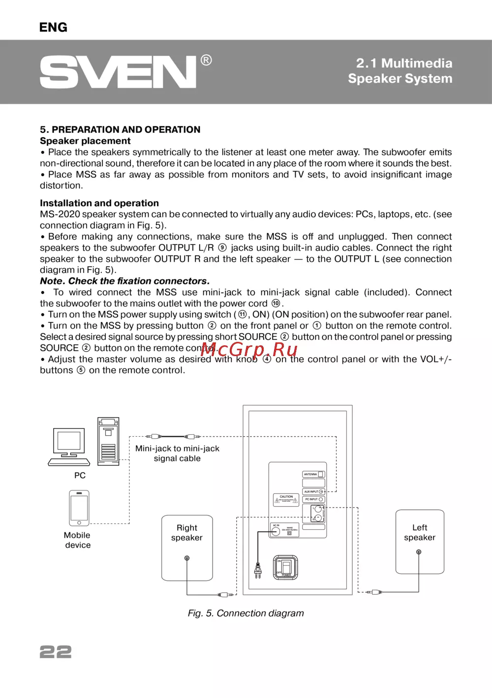 Sven MS-2020 [22/28] Installation and operation