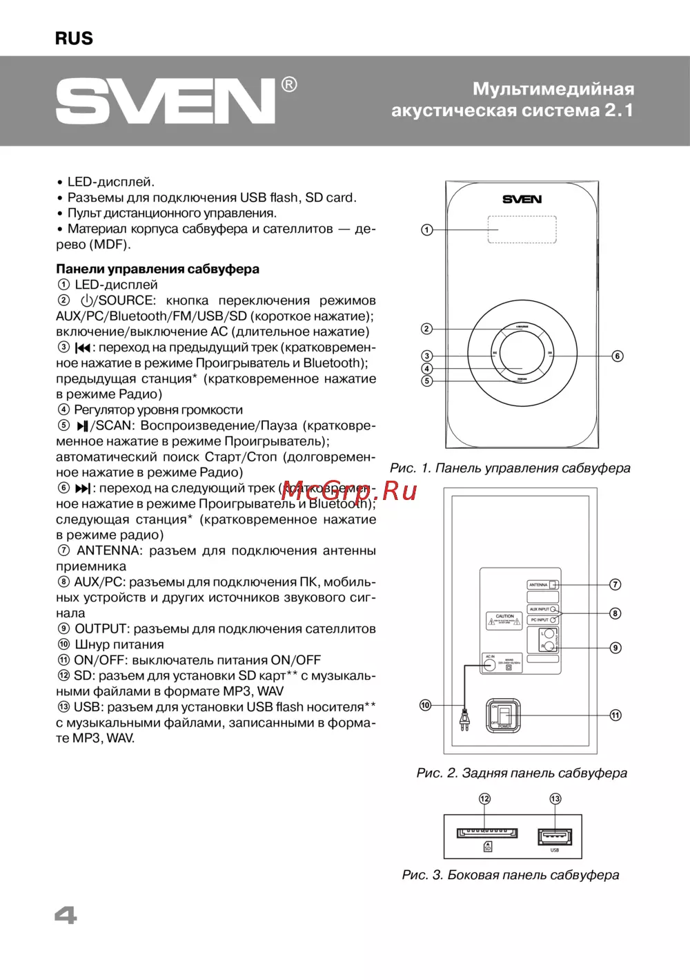 ![Sven MS-2020 [4/28] Рис 1 панель управления сабвуфера](/views2/1662857/page4/bg4.png)