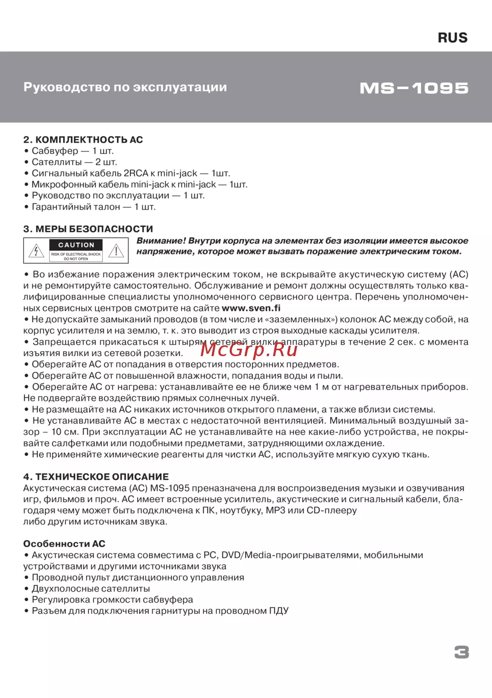 Sven MS-1095 [3/20] Руководство по эксплуатации