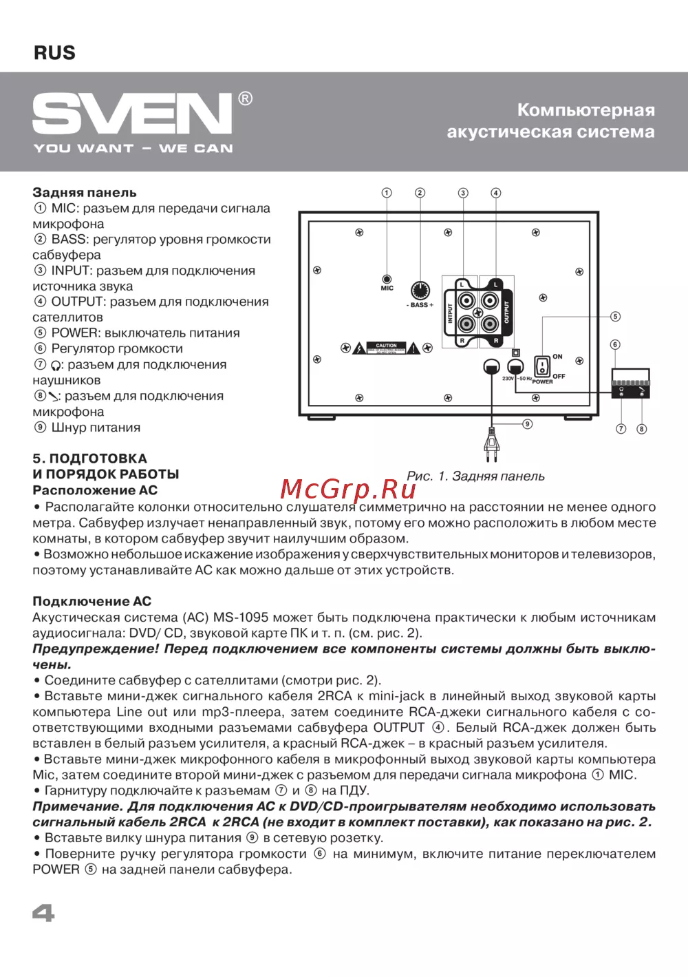 Sven MS-1095 [4/20] Компьютерная акустическая система