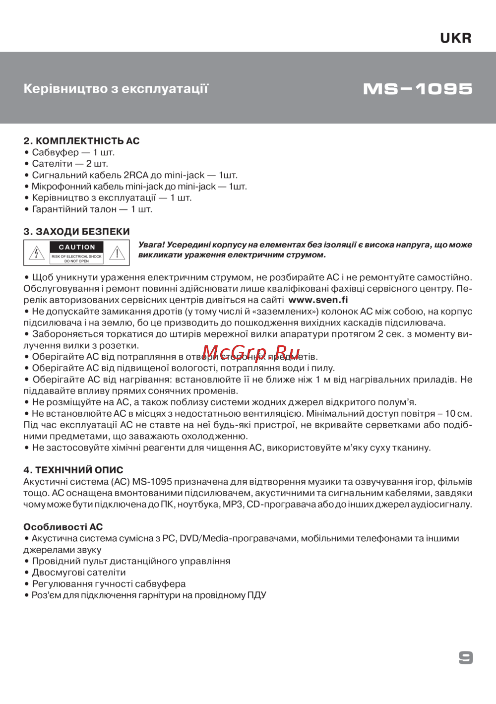 Sven MS-1095 [9/20] Керівництво з експлуатації