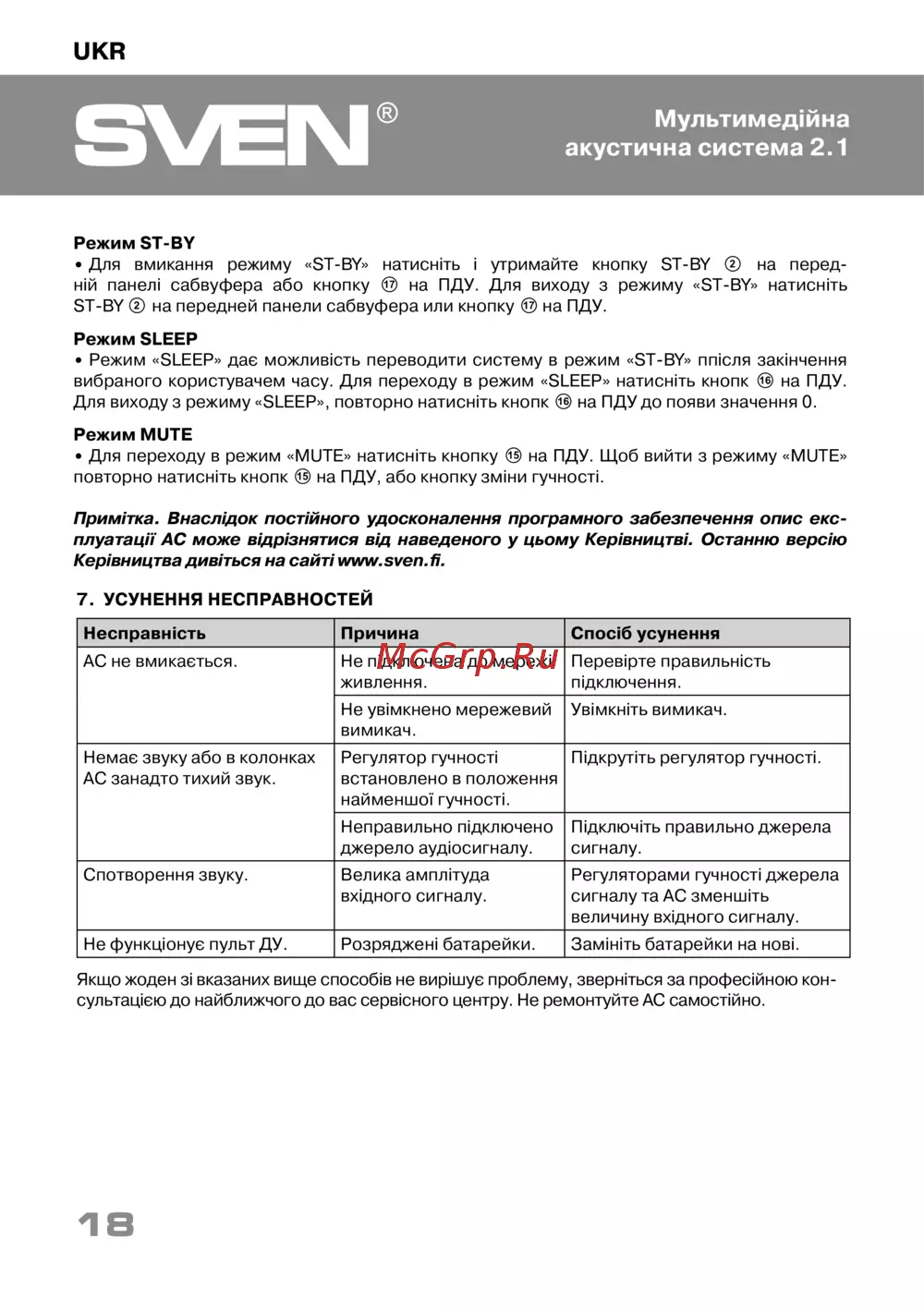![Sven MS-2080 [18/28] Усунення несправноcтей](/views2/1662983/page18/bg12.png)