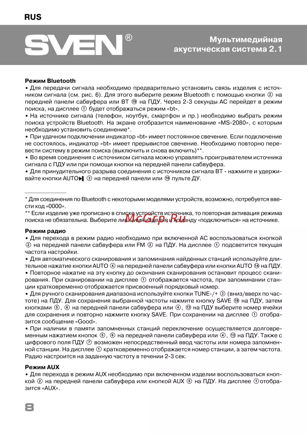 Sven MS-302Руководство по эксплуатации -