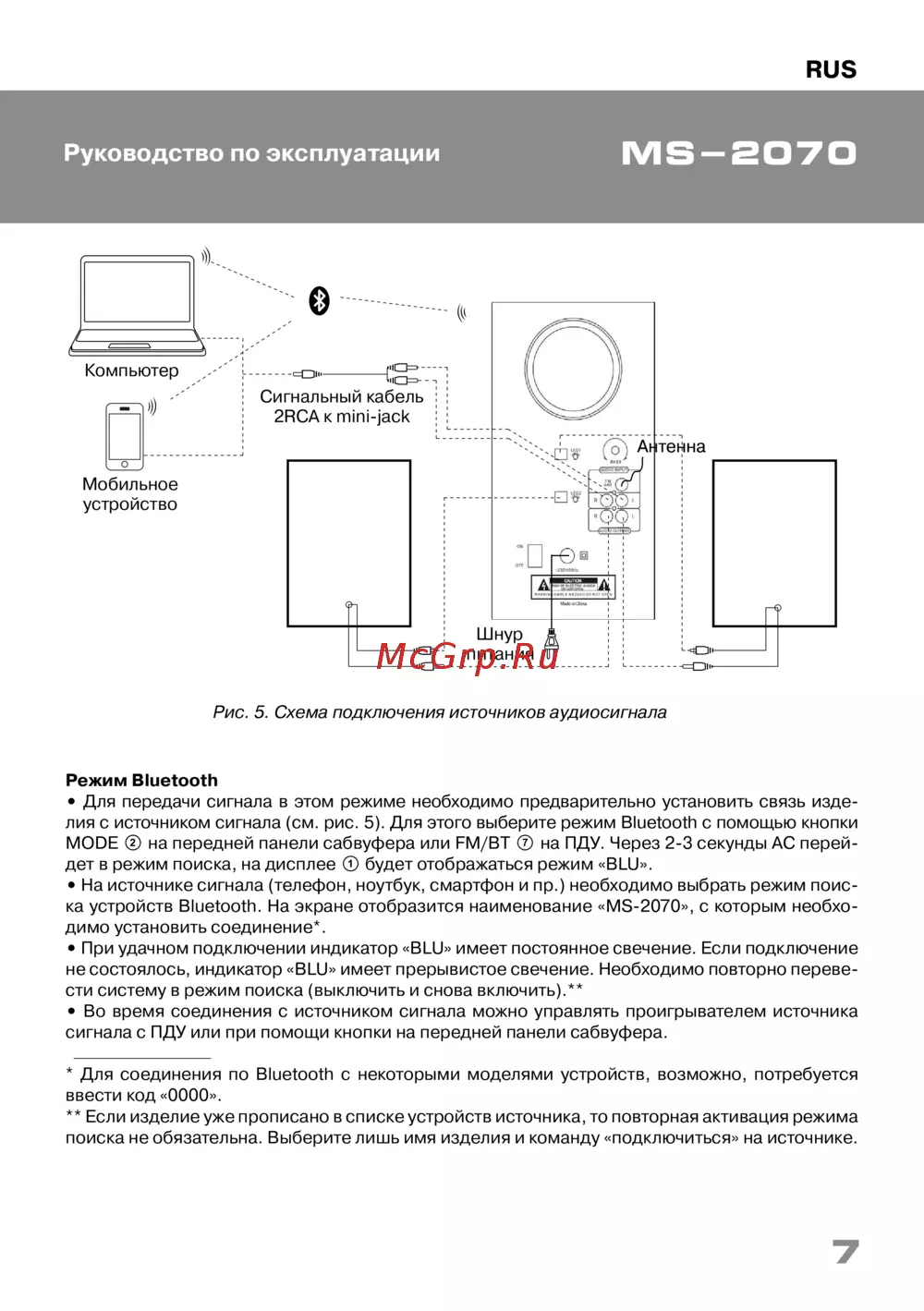 лия с источником сигнала (см. рис. 5). Для этого выберите режим Bluetooth с помощью кнопки