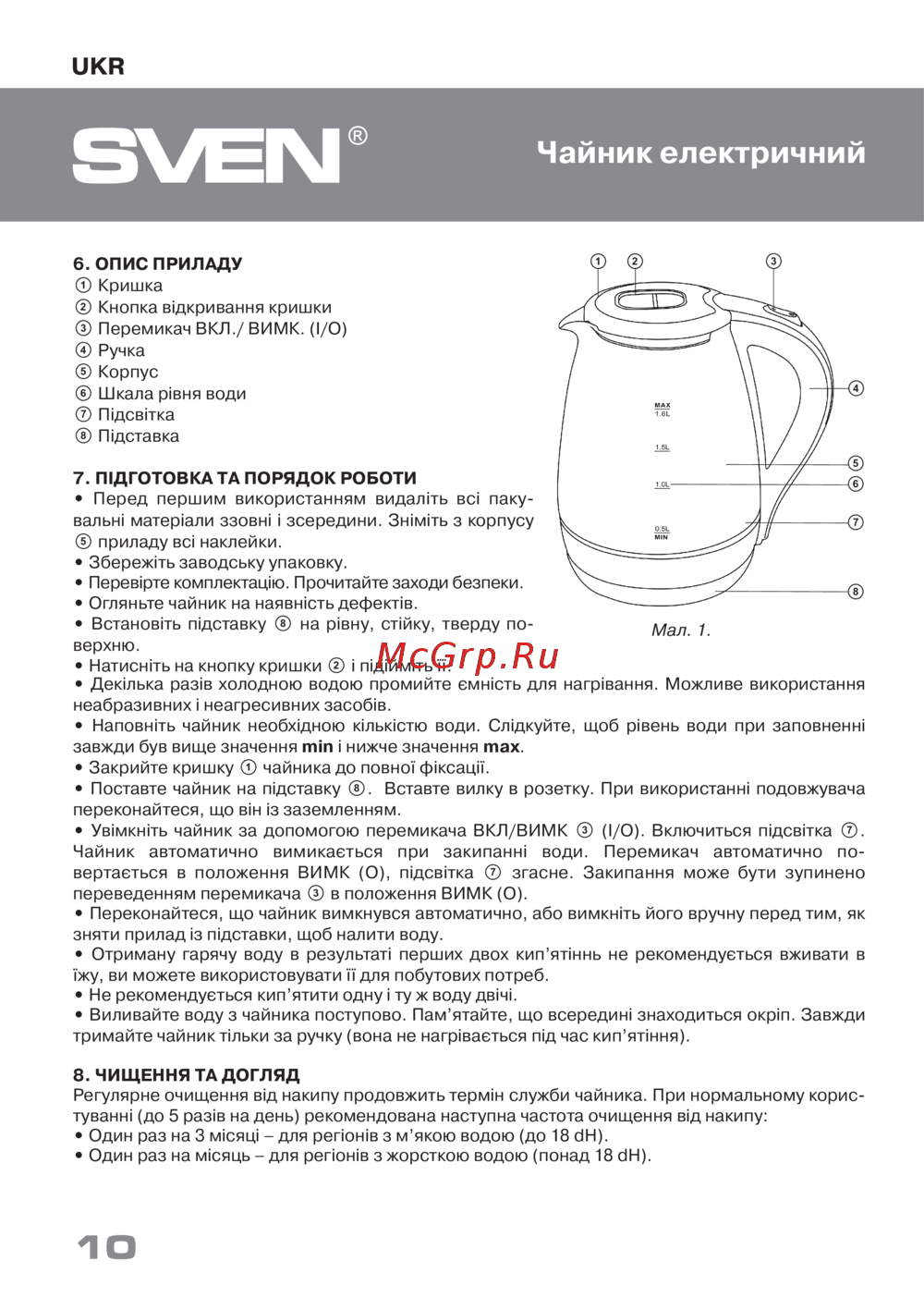 Sven KT-G1806 — електричний чайник: опис, підготовка та правила використання [10/16]
