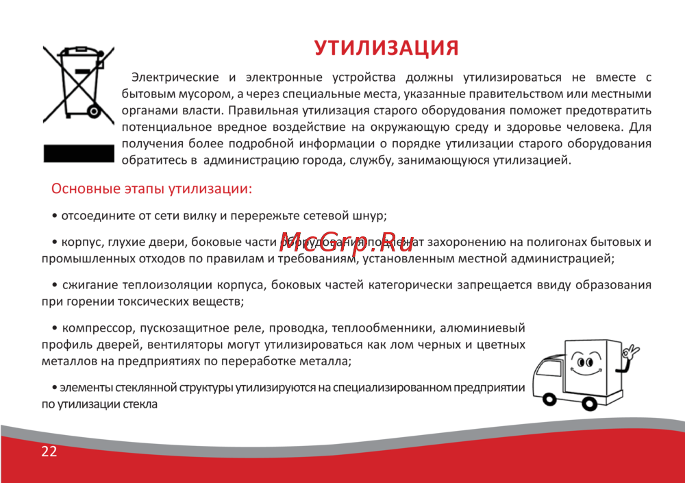• корпус, глухие двери, боковые части оборудования подлежат захоронению на полигонах бытовых и