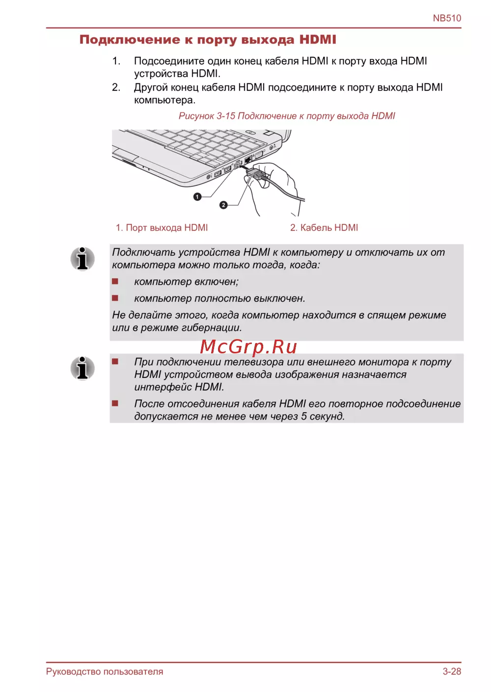 Toshiba NB510-A1K [68/154] Подключение к порту выхода hdmi