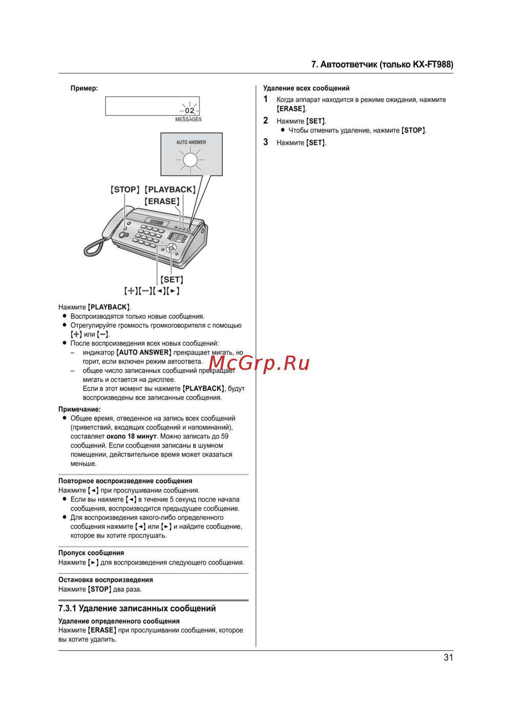 7. Aвтоответчик (только KX-FT988)