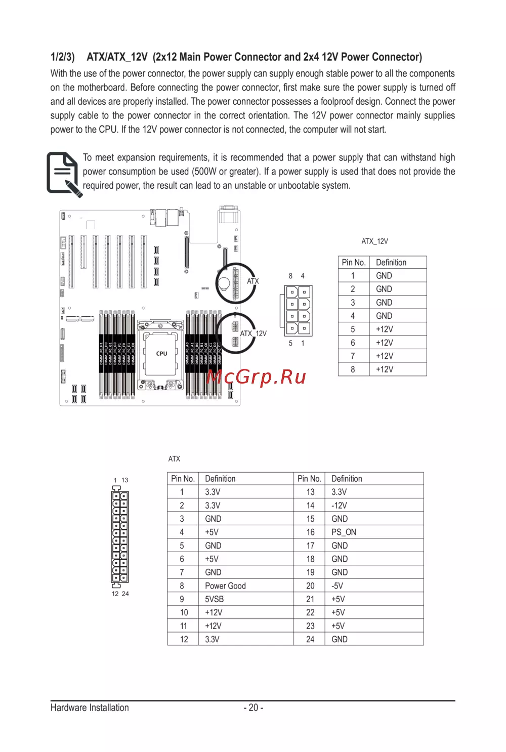 1/2/3) ATX/ATX_12V (2x12 Main Power Connector and 2x4 12V Power Connector)
